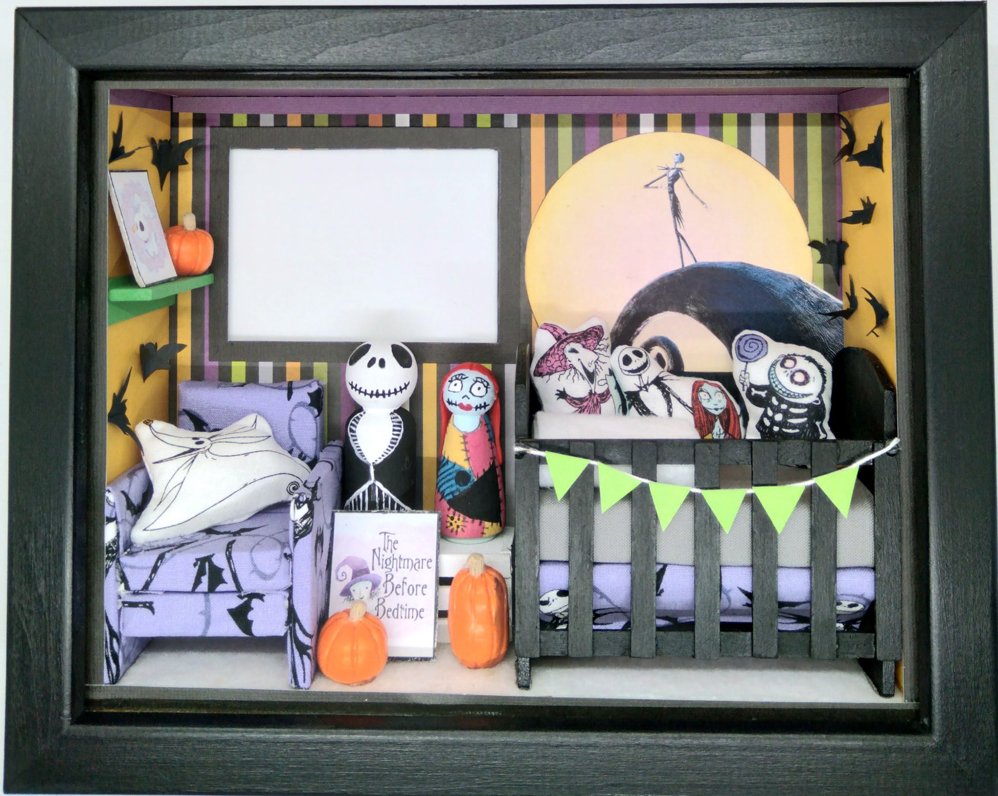 This custom box was commissioned by an aunt who is a fan of "The Nightmare Before Christmas" and wanted a themed nursery for her niece.
